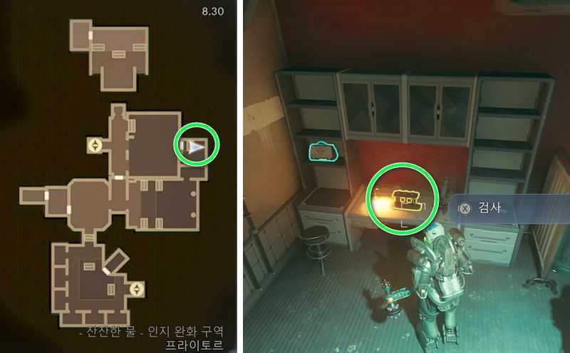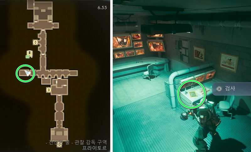 인지 완화 구역 동쪽에 있는 방으로 들어가, 약물 배급 기계 뒤쪽 책상 위에서 ‘정신 개조 약물 샘플‘을 획득합니다.