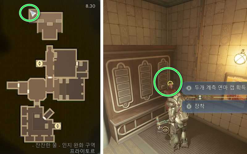 그러면 우측의 벽이 열리므로 ‘특성 연마 장치 설계도‘를 획득합니다.