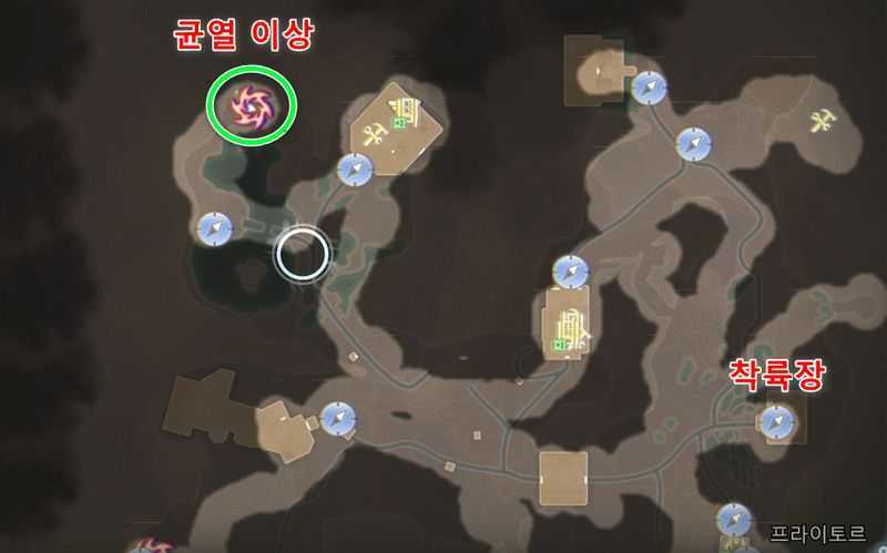 ‘아자’를 파티에 참가시키고, 프라이토르 북서쪽 끝에 있는 ‘균열 이상‘으로 갑니다.