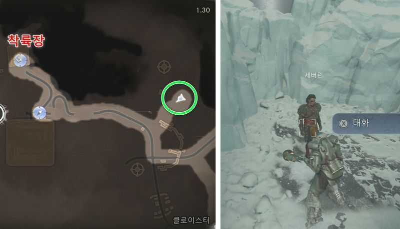 착륙장에서 남동쪽에 있는 목적지로 이동해 ‘세버린‘과 대화합니다.