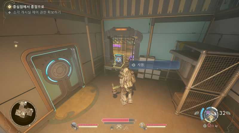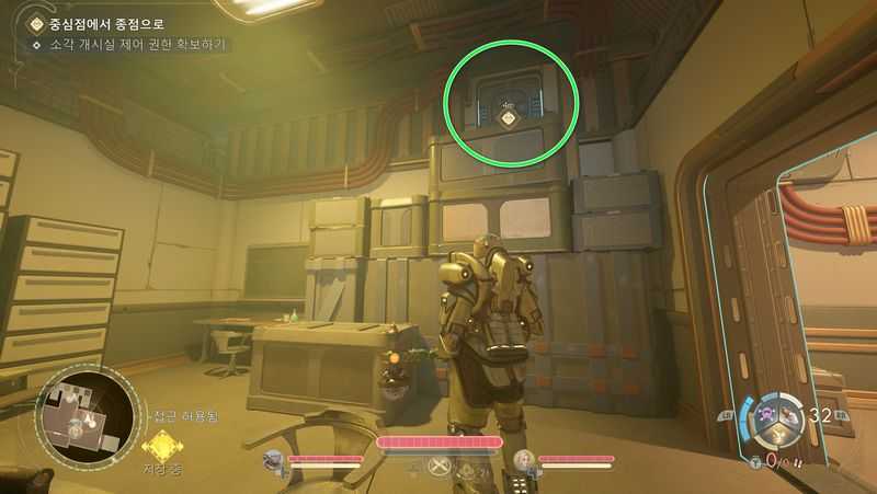 환풍구를 통해 나오면, 방안에 단말기가 있으므로 상호작용하여 [수동 제어 설정 접근] → [2층 방어 시설 비활성화]를 선택합니다.
