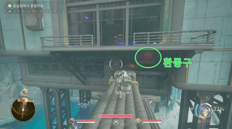 그러면 또 보라색 레이저가 보이는데, 그걸 넘어간 후 우측을 보면 환풍구가 보입니다.