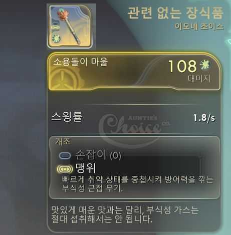 그외 이모네 초이스의 세력 퀘스트를 클리어후에 보상으로 받을 수 있는 유니크 무기가 있으나 이 글에서는 생략합니다.