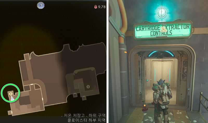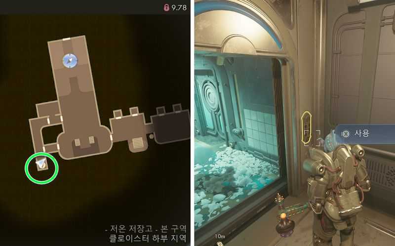 본 구역 남서쪽에 있는 엘리베이터를 타고, 저온 저장고 – 하위 구역으로 갑니다.