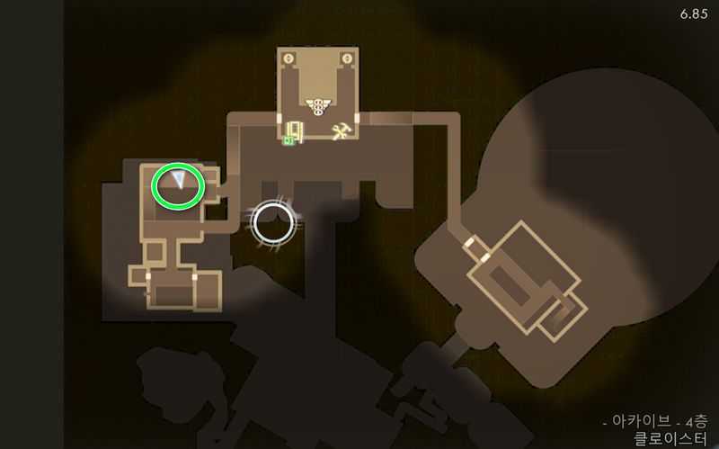 그후 발판을 밟아가며, 서쪽으로 이동하여 건물안에 들어가, 승강기를 타고 내려가면 아카이브에 도착합니다.
