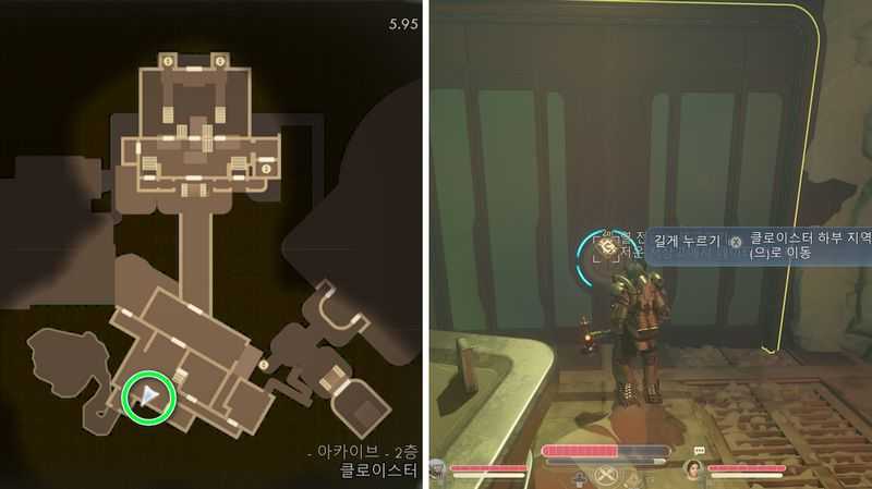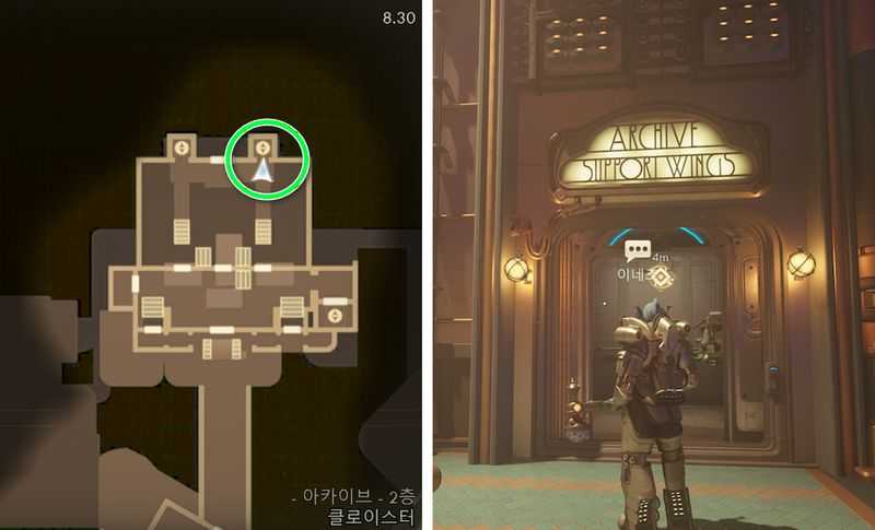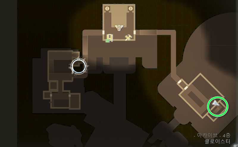 아카이브에 도착하면 안쪽의 승강기를 타고 올라가 위 이미지 위치로 갑니다.