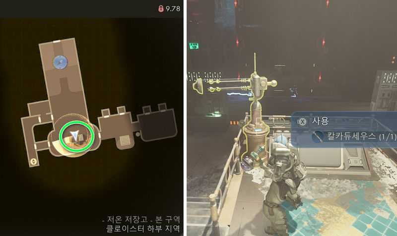 저온 저장고 남쪽에 있는 장치와 상호작용 후 칼카듀세우스를 사용합니다.