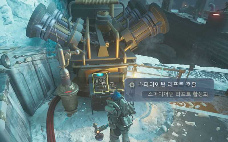 그후 바로 옆의 레버를 당겨서 스파이어턴 리프트를 호출합니다.