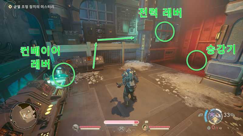 그후 컨베이어 레버 우측 뒤에 있는 턱을 올라가 안쪽 벽에서 전력 레버를 당겨 [전력 활성화]를 합니다.