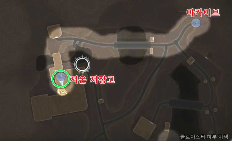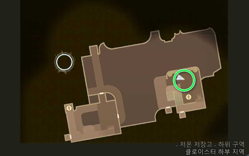 클로이스터 하부 지역 북서쪽에 있는 ‘저온 저장고‘로 이동합니다.