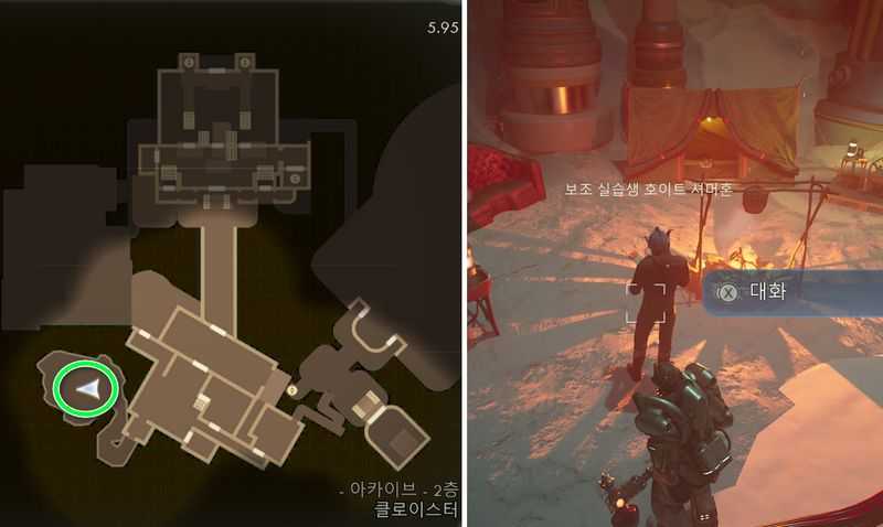 그후 빨간색 전선을 따라 이동하여, 아카이브 2층 남서쪽에 있는 ‘보조 실습생 호이트 셔머혼‘과 대화합니다.
