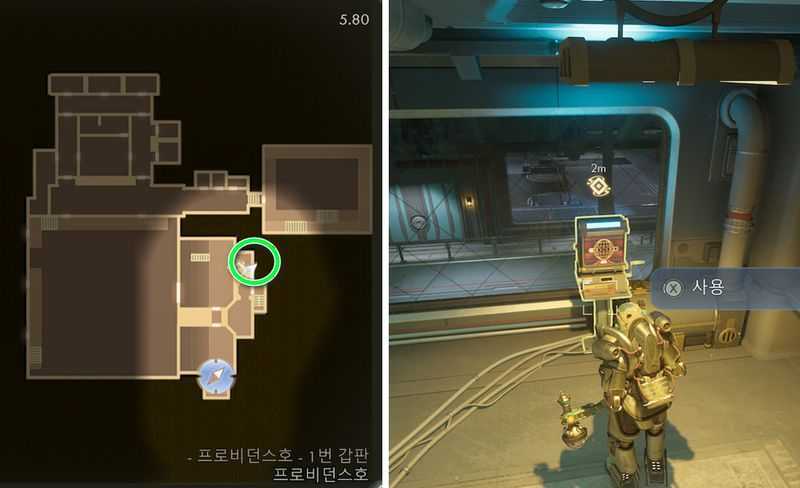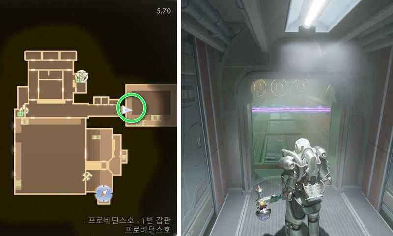 그후 프로비던스호 – 1번 갑판 동쪽으로 가면, 보라색 레이저가 보일 것입니다.
