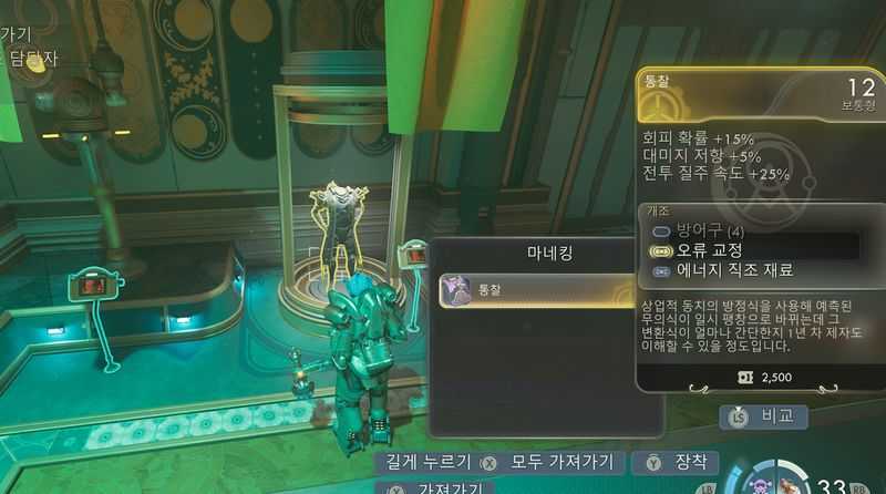 아카이브 UNEIAC가 있던 방에서 나오자마자, 좌측 유리 진열장에서 유니크 방어구 – 통찰 획득